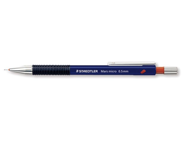STAEDTLER Mars® Micro 775 trykkblyant har smarte funksjoner som fingergrep av gummi, beskyttende blyhylse og ergonomisk kropp. Denne trykkblyanten har et gummigrep som gir maksimal komfort når du skriver. Denne påfyllbare blyanten har også et PVC- og lateksfritt viskelær.