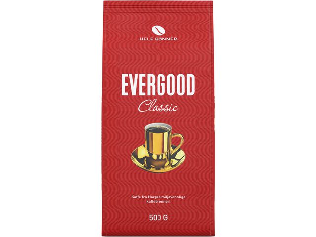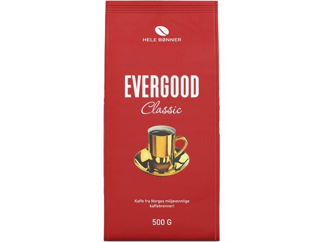 EVERGOOD Kaffe består av 100% Arabica-bønner fra Colombia, Kenya, Costa Rica, Brasil og Guatemala. I frodige fjellområder høyt over havet, finnes det unike klimaet som modner kaffeplantens bønner langsomt. Slik får den fyldige, aromatiske smaksrikdommen som kjennetegner EVERGOOD Kaffe tid til å utvikle seg. EVERGOOD blir produsert på Norges miljøvennlige kaffebrenneri som åpnet i 2020. Brenneriet er hovedsakelig bygget i tre, og drives med 100 % fornybar energi. Du kan lese mer om Norges miljøvennlige kaffebrenneri på www.evergood.no.