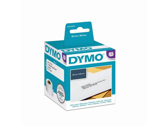 Dymo LabelWriter¿ standard adresseetiketter har et ikke-permanent lim på baksiden som enkelt kan fjernes fra flaten de er klebet på. DYMO® LabelWriterT standard adresseetiketter gir stilige, brukerdefinerte etiketter i stor størrelse på 89 x 28 mm, som passer til lange adresser, administrering og organisering av mapper hjemme eller på kontoret. LabelWriterT-etiketter gir deg utskrift av høy kvalitet med maksimal ytelse. Hver etikett tas lett av uten å etterlate limrester og kan skrives ut én om gangen uten papirstopp, noe som gir mindre avfall. De bruker termisk overføringsteknologi til å skrive ut tekst, noe som fjerner behovet for blekk og toner.