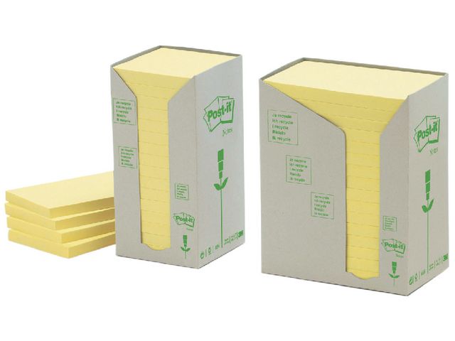 Bruk disse Post-it®-klistrelappene for raskt og effektivt å gi påminnelser, legge igjen beskjeder eller lage gjøremålslister. Sørg for at notatene eller ideene dine legges merke til med denne tårnpakken av Post-it®-klistrelapper, som minimerer avfallet fordi hver blokk ikke er plastinnpakket. De store klistrelappene er laget av 100 % gjenvunnet papir. Post-it®-lapper er svært allsidige, slik at du kan bruke dem til ulike formål, for eksempel raskt å skrive ned telefonnumre, lage gjøremålslister eller notere ideer og legge igjen beskjeder til kolleger, venner eller familie. Lappene kan flyttes, slik at du enkelt kan feste, fjerne og plassere dem på nytt uten at de etterlater seg limrester på overflater som arkivskap, dører og vegger eller inne i planleggere, ringpermer eller journaler.