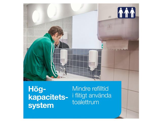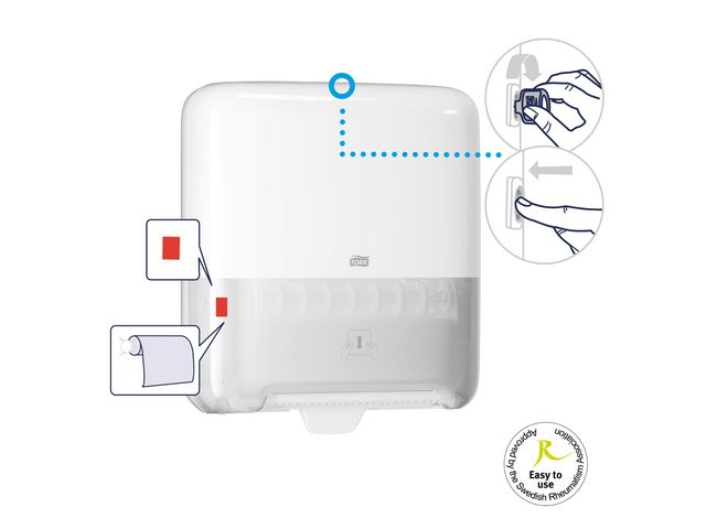 Tork Matic dispenser kombinerer funksjonalitet med utmerket design og gir toalettrommet et moderne preg. Tørkerullsystem somhar høy kapasitet og er utmerket for høyt trafikerte toalettrom og vaskestasjoner i mange ulike miljøer.
