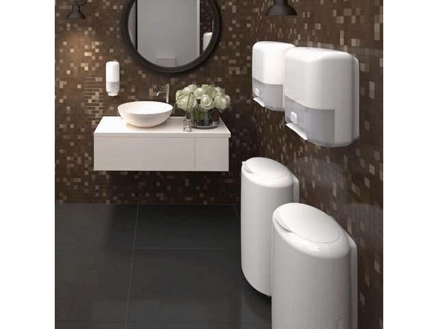 Tork Elevation serien kombinerer funksjonalitet med utmerket design og gir toalettrommet et moderne preg. Kan monteres på veggen eller plasseres på gulvet, lokk med myk lukking kan fås som tilbehør og gir et ryddig og rent innt... Läs mer