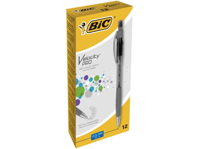 Denne BIC® Velocity Pro-blyanten er en påfyllbar trykkblyant med behagelig polstret grep. BIC® Velocity Pro passer utmerket som hverdagspenn. Det komfortable, dempede gummigrepet gir deg en stø hånd, slik at du kan skrive uten å glippe taket, noe som gir ren og jevn skrift. Pennen gir jevne streker og sørger for at notatene du tar på skolen eller i møter, fremstår som rene og ryddige. Lommeklipsen som er festet til trykkblyanten, gjør det lett å bære den med seg