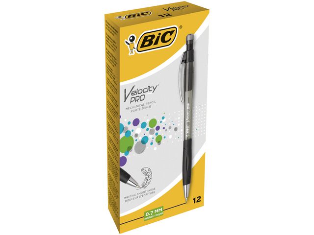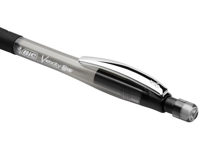 Denne BIC® Velocity Pro-blyanten er en påfyllbar trykkblyant med behagelig polstret grep. BIC® Velocity Pro passer utmerket som hverdagspenn. Det komfortable, dempede gummigrepet gir deg en stø hånd, slik at du kan skrive uten å glippe taket, noe som gir ren og jevn skrift. Pennen gir jevne streker og sørger for at notatene du tar på skolen eller i møter, fremstår som rene og ryddige. Lommeklipsen som er festet til trykkblyanten, gjør det lett å bære den med seg