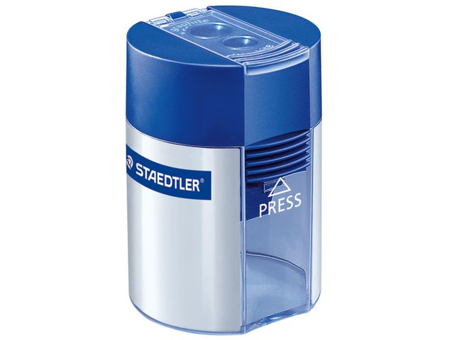 STAEDTLER 512 dobbel blyantspisser har to hull for blyanter av ulik størrelse. Denne blyantspisseren har et hengslet lokk for hullene som sikrer at spisserester ikke faller ut. Lokket har en sikkerhetslås som gjør det mulig å frakte blyantspisseren uten at spisserester faller ut. STAEDTLER 512 dobbel blyantspisser passer til blyanter av mange størrelser. Blyantspisseren har to hull av ulike størrelser som gjør det enkelt å spisse både små og store blyanter. Det lille hullet passer til blyanter av vanlig størrelse. Dette hullet har en spissere spissevinkel som gir tynne, nøyaktige streker. Det store hullet passer til tykke blyanter og fargeblyanter og gjør det lettere å lage myke, tykke linjer.
