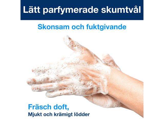 Parfymerte Tork Premium S4 skumsåpe for håndvask gir maksimal komfort og hygiene, er dermatologisk testet og ekstra mild mot huden.