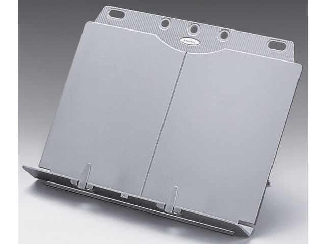 BookliftT-dokumentholderen fra Fellowes® er spesielt utviklet for store referansematerialer og planleggere, og gjør at tastearbeidet går som en lek BookliftT-dokumentholderen fra Fellowes® vil gjøre referansearbeidet og tastearbeidet en komfortabel og enkel oppgave da den er spesielt utformet for referansebøker, planleggere og store håndbøker. Forsknings- eller referansearbeidet ditt vil være bare et øyekast unna, og med ni høydejusteringer kan du plassere nesten hvilken som helst bokstørrelse i den ideelle vinkelen. BookliftT har to justerbare klemmer for å holde sidene åpne, og det sklisikre underlaget kan brettes sammen for kompakt oppbevaring.